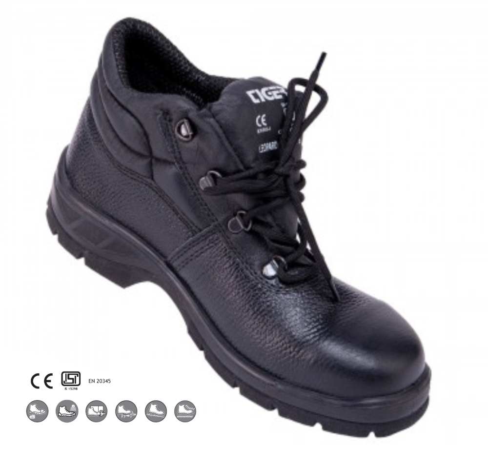 High ankle leather boot made for all major floor work in industrial construction or work floors to protect from hazards like falling objects or heavy loads or working with sensitive equipment. Construction of the shoe ensures maximum comfort, ease of use, and longevity.